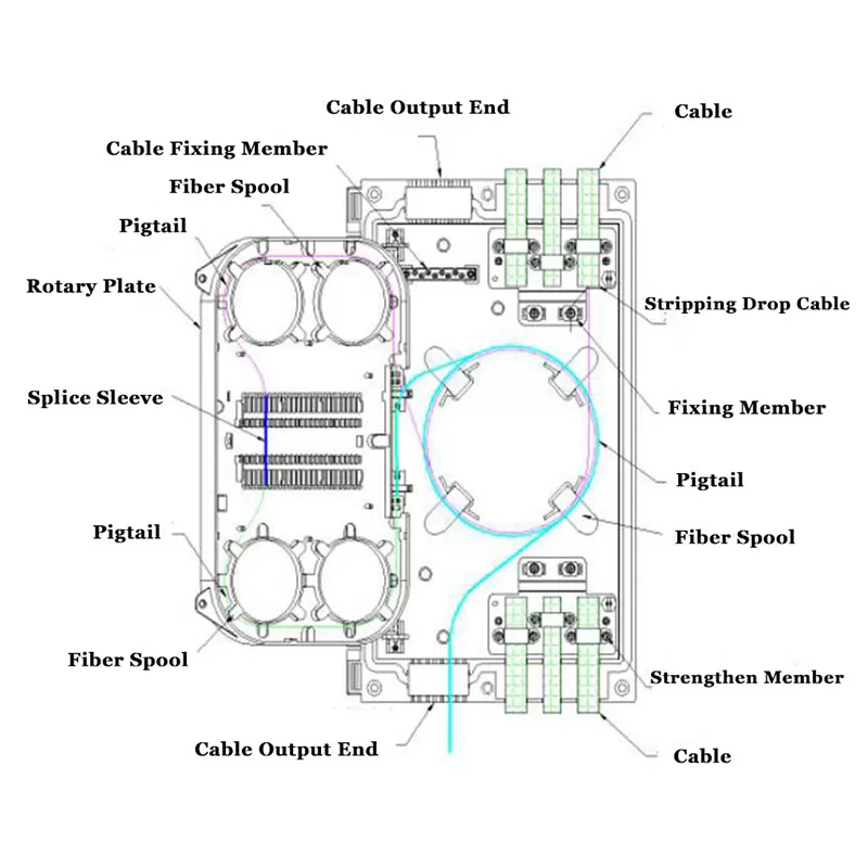 * Rotary Internal structure, super stratum for splicing and distributing, substratum for cable arrangement.