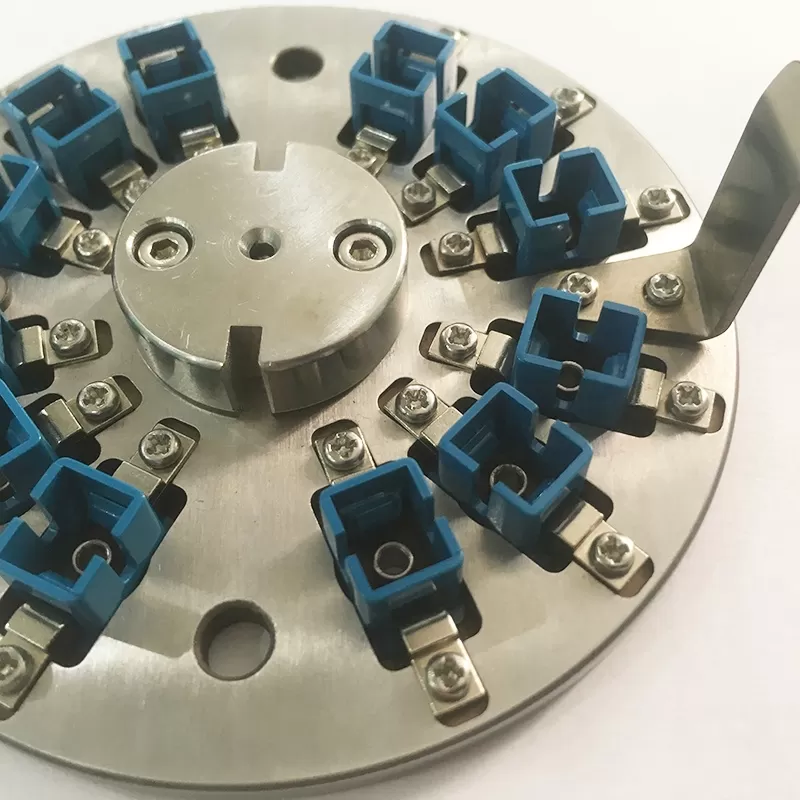Special designed for SC/UPC connector polishing,12 connectors can be placed for polishing at the same time,Parts may be replaced on the jig, it is effective for polishing cost saving, Both left-handles and right-handles are provided to suit operation need, Water inlet design of the jig comply with the outlet of polishing machine, Easy to expel the dust out during polishing operation