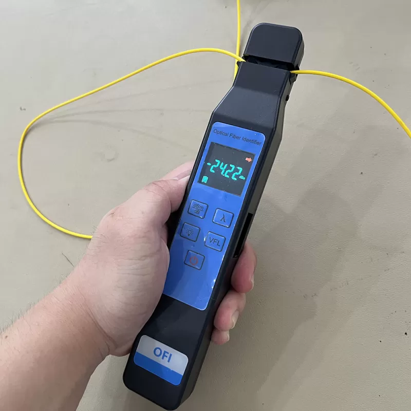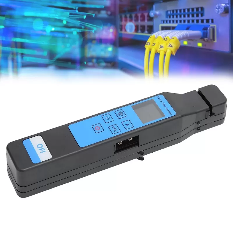 Optical fiber identifiers (OFI) are rugged, easy-to-use test instruments that detect the presence of signals on optical fibers. An OFI is an important tool for field technicians – assuring that live fibers are not disconnected and providing the ability to trace fibers from end to end.OFI are simply clamped onto a fiber, where they induce a safe macro-bend and allow a small amount of light to escape. Units use this light to detect the presence of network traffic, test tones or CW signals and indicate the direction of the signal.