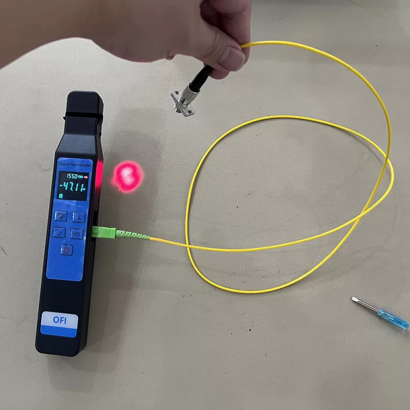 Multifunctional 800nm-1700nm wavelength fiber identifier adopts online macrobending technology for non-destructive testing, which can measure signal direction and power to avoid line interruption caused by misoperation.