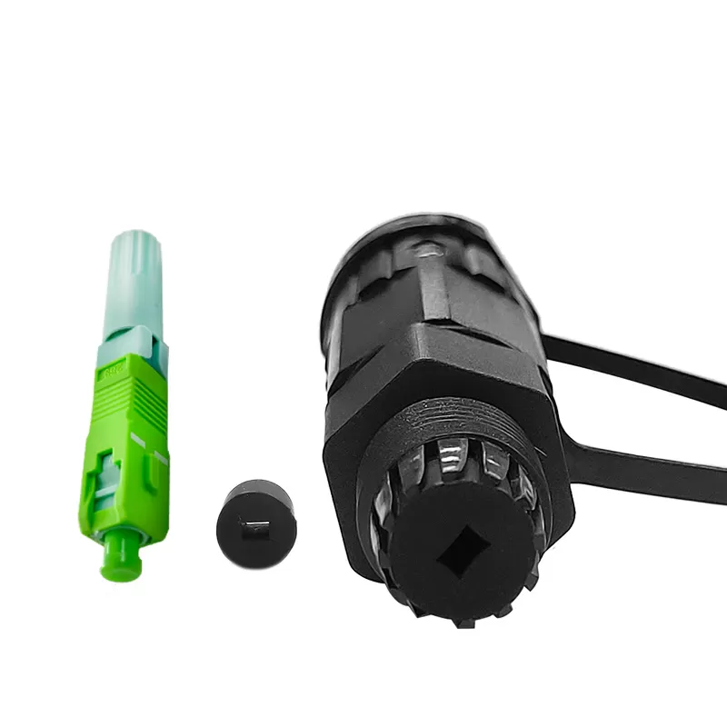 Field assembly optical reinforced adapter provide an cost effective, easy, environmental seal and mechanical protection for 1 fibers simplex SC style connections. Inside cover can protect ferrule end face far away scratch when mating with receptacle; Special fool-proofing design equal to SC/APC connector has blind-mating function; One hand Bayonet-style mechanical latch. The assemblies guarantee an easy, one-step connection system with the combined push-pull insertion and bayonet-style mechanical latch. It provides quick installation solutions and has good performance on mating receptacle / Adapter.